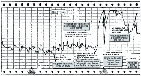 Depois de ligar a planta ao poligrafo, Cleve Backster