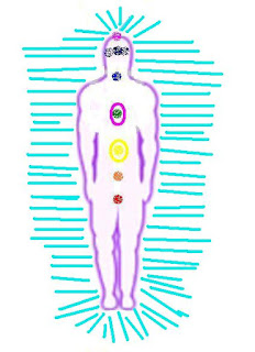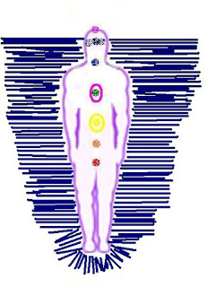 Sintam os chakras todos...na imagem só estão os 7 básicos mais Timo, mas os outros 6 estão representados por símbolos de infinitos (8) na cabeça e pés antes dos cones. Assim temos os 13 visíveis...e isto está correctíssimo.